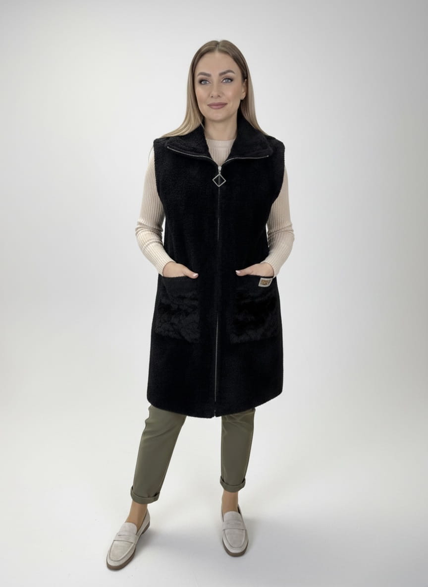 Bezrękawnik z Alpaki - rozpinany z kieszonkami.