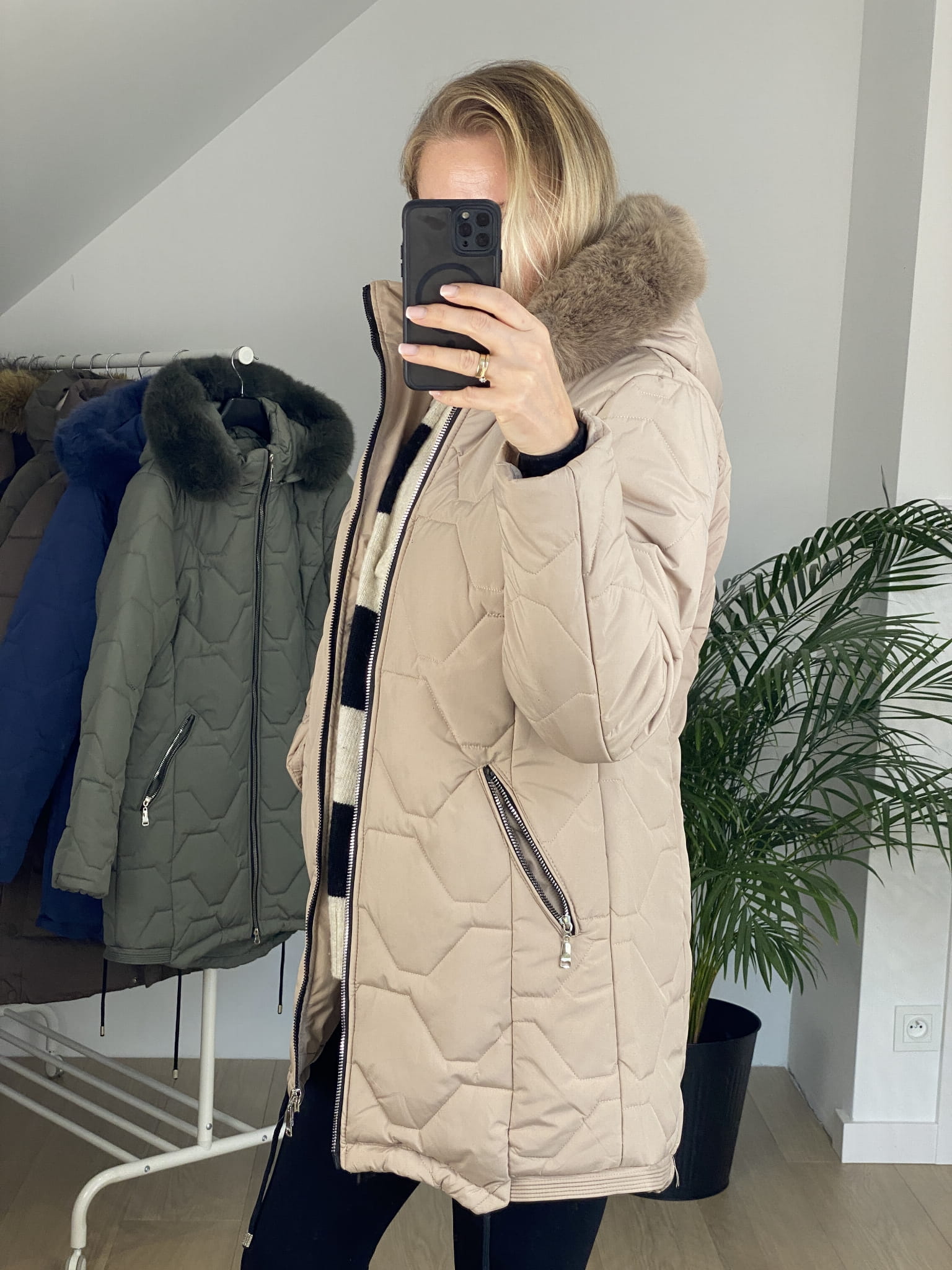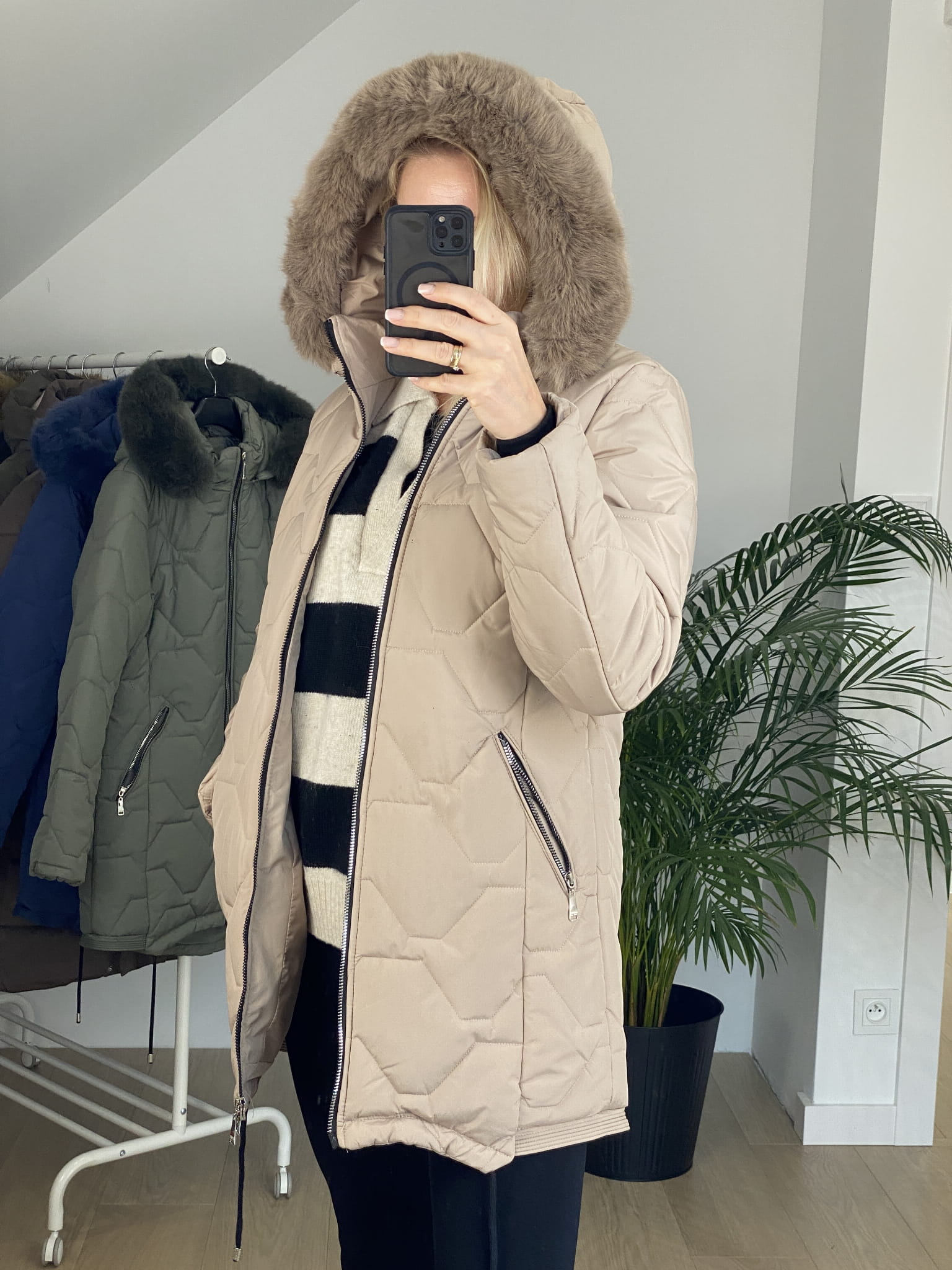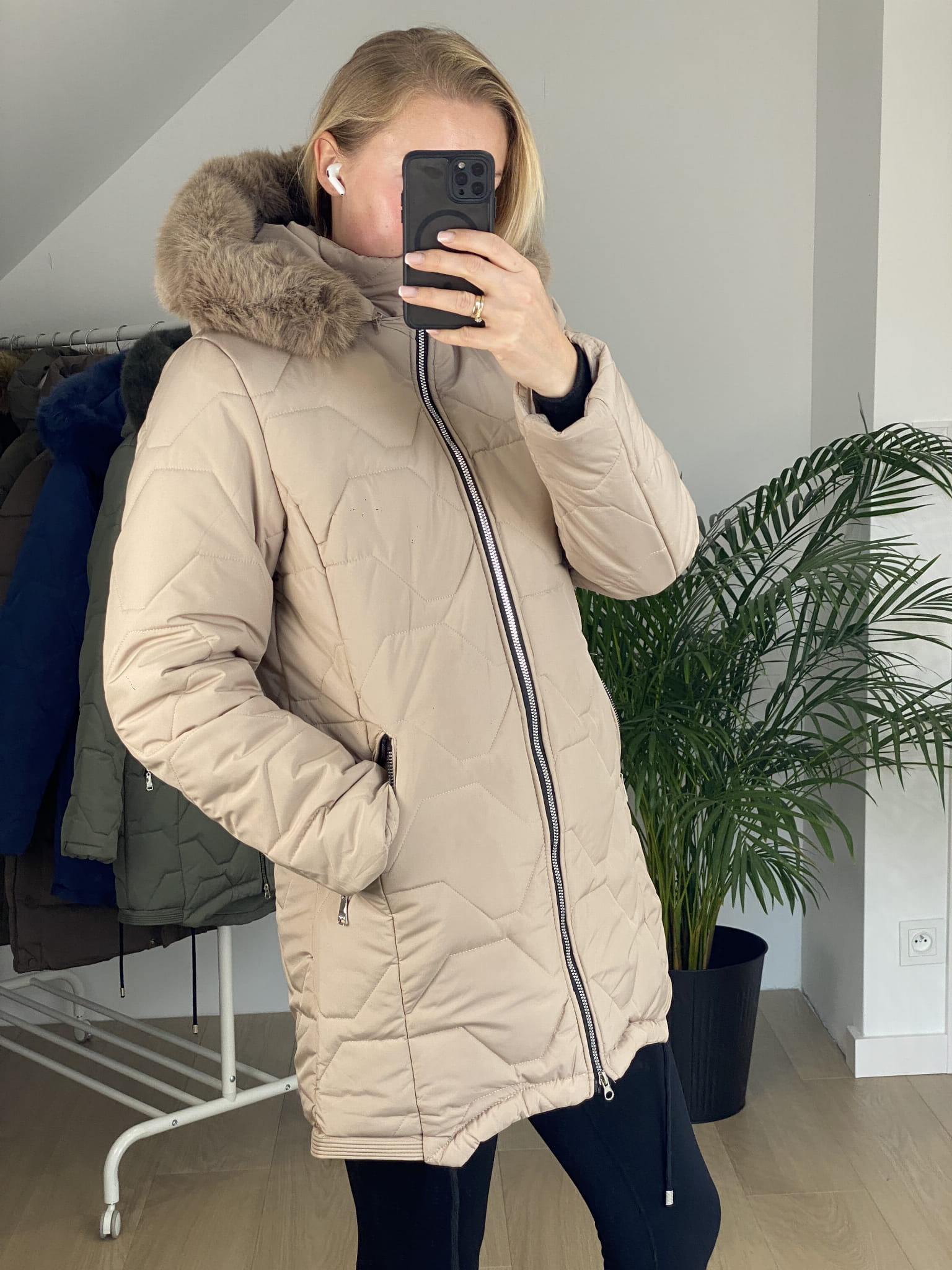- odpinany kaptur oraz osobno można odpiąć futro , dzięki czemu do wykorzystania zarówno chłodną jesienią jak i wiosną.