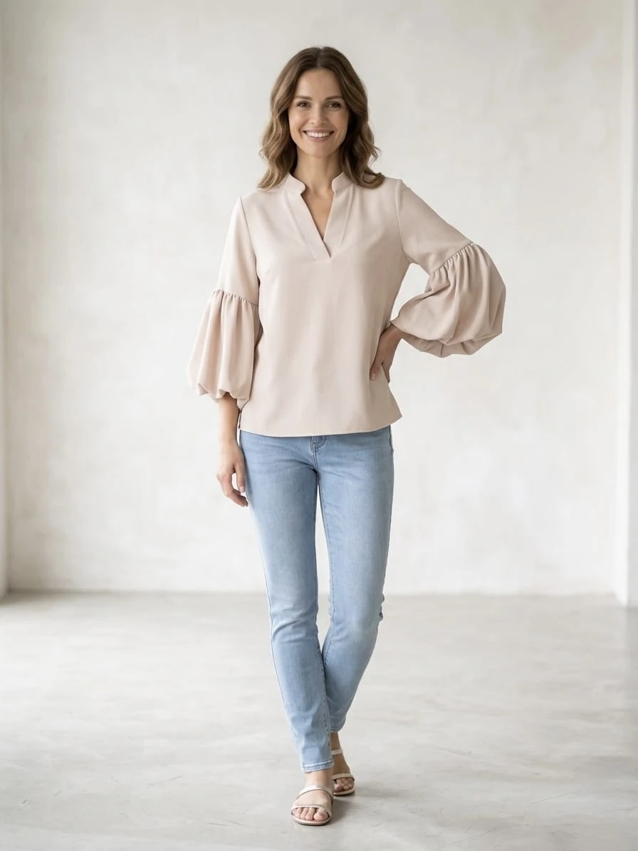 Są takie dni, kiedy nie masz czasu myśleć, co na siebie włożyć… a i tak chcesz wyglądać dobrze. Właśnie wtedy sięgasz po tę bluzkę — i nagle wszystko się zgadza.
