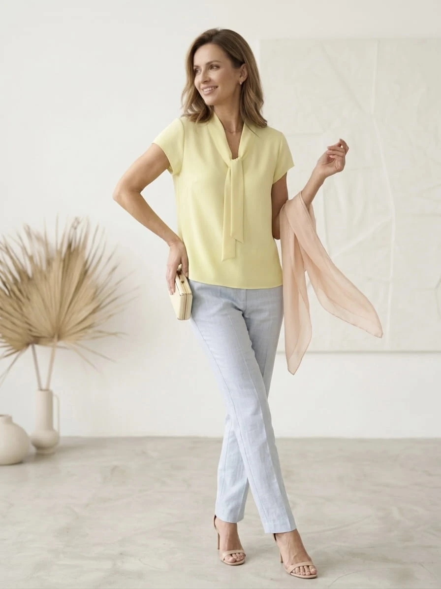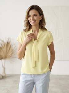 Stylowa i kobieca bluzka, która łączy w sobie elegancję z wygodą noszenia. Lekki, przyjemny materiał pięknie układa się na sylwetce, zapewniając komfort przez cały dzień. Uniwersalny fason sprawia, że model doskonale sprawdzi się zarówno w codziennych stylizacjach, jak i na bardziej wyjątkowe okazje.