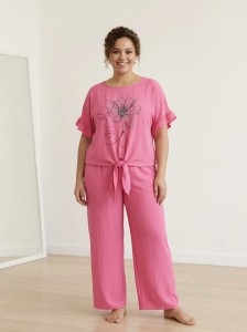 Komplet plus size flower różowy
