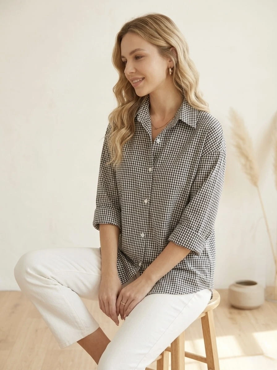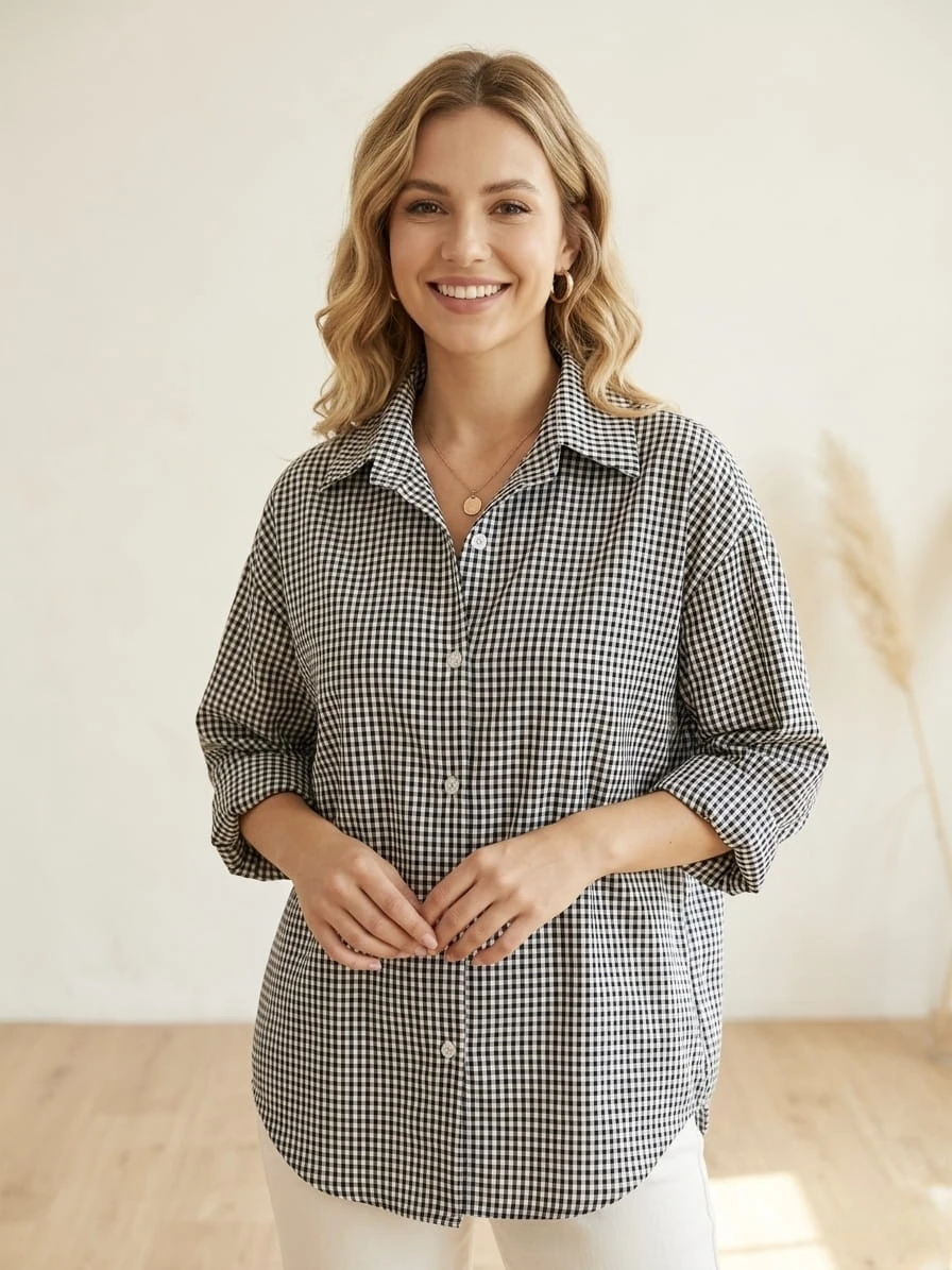 Stylowa koszula w delikatną kratkę wykonana z przyjemnej w dotyku wiskozy z dodatkiem elastanu. Materiał jest lekki, przewiewny i dobrze układa się na sylwetce. Model z klasycznym kołnierzykiem oraz długim rękawem z możliwością podwinięcia sprawdzi się zarówno w codziennych, jak i bardziej eleganckich stylizacjach.