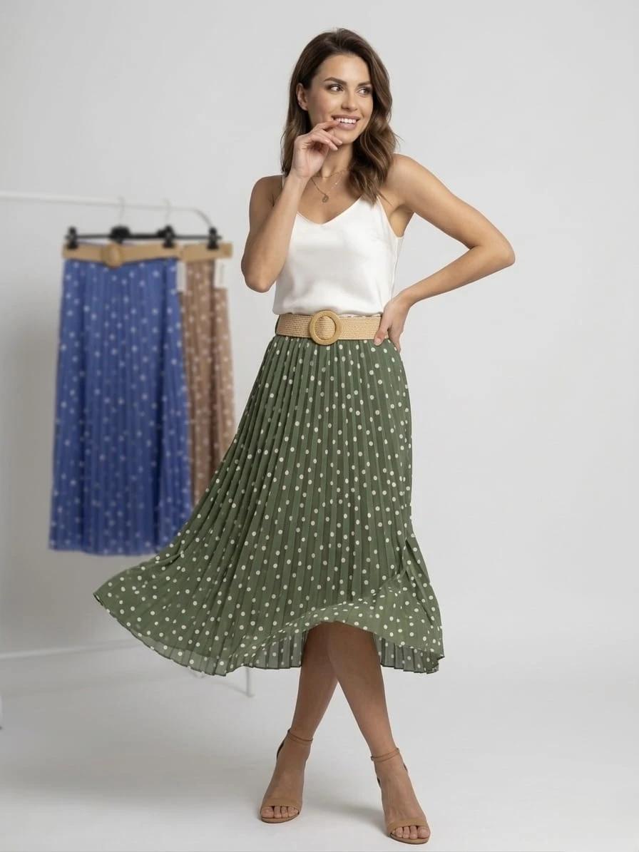 Plisowana spódnica w groszki z paskiem IZABELA