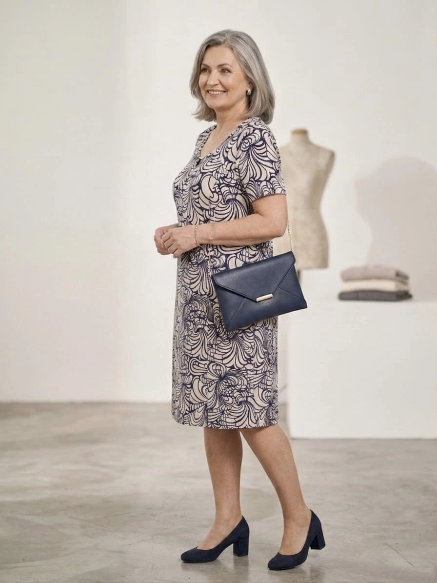 • Krój Plus Size: Klasyczny fason o długości do kolan optycznie wysmukla figurę, a krótki rękawek zapewnia swobodę w cieplejsze dni.