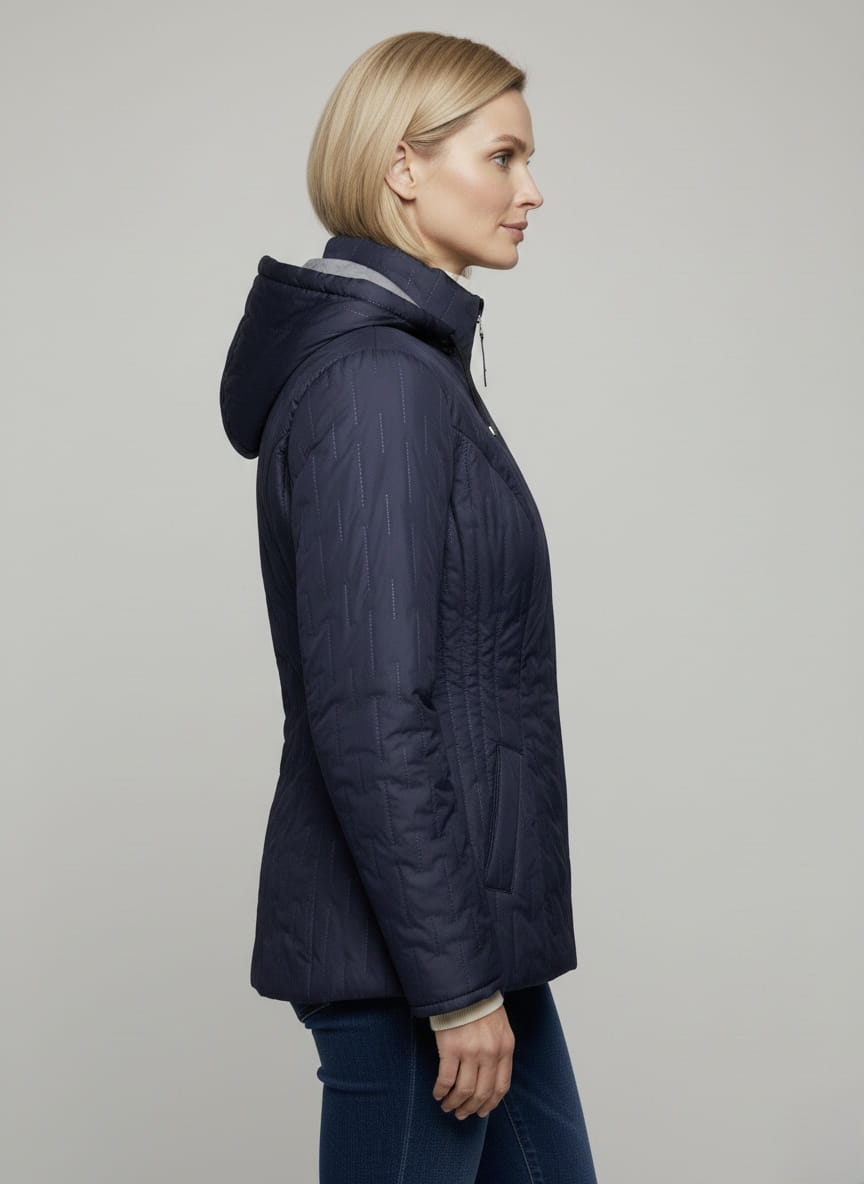 Model został zaprojektowany i uszyty w Polsce, z myślą o proporcjach typowych dla polskiej sylwetki - z miejscem na biust, subtelnym podreśleniem talii i swobodą w biodrach. Dzięki temu kurtka pięknie układa się na figurze, nie ciągnie, nie opina i nie zaburza proporcji.