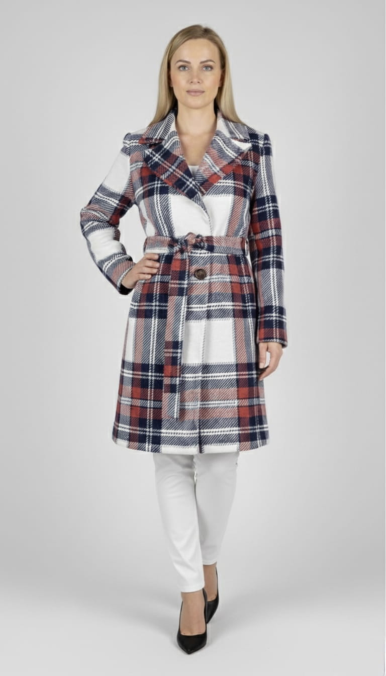 Płaszcz wiosenny przejściowy krata czerwono granatowa
